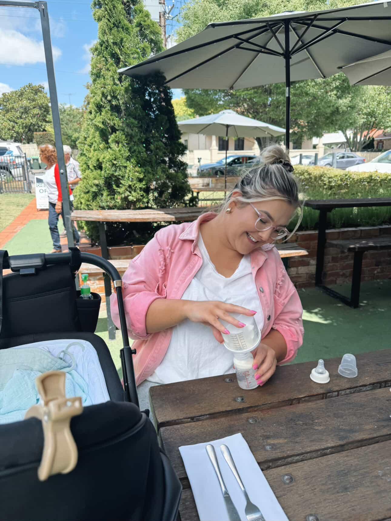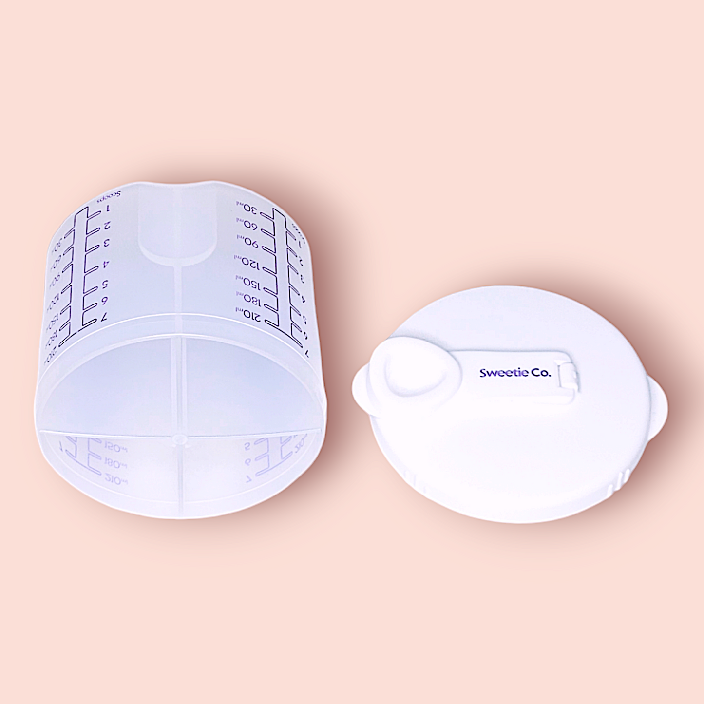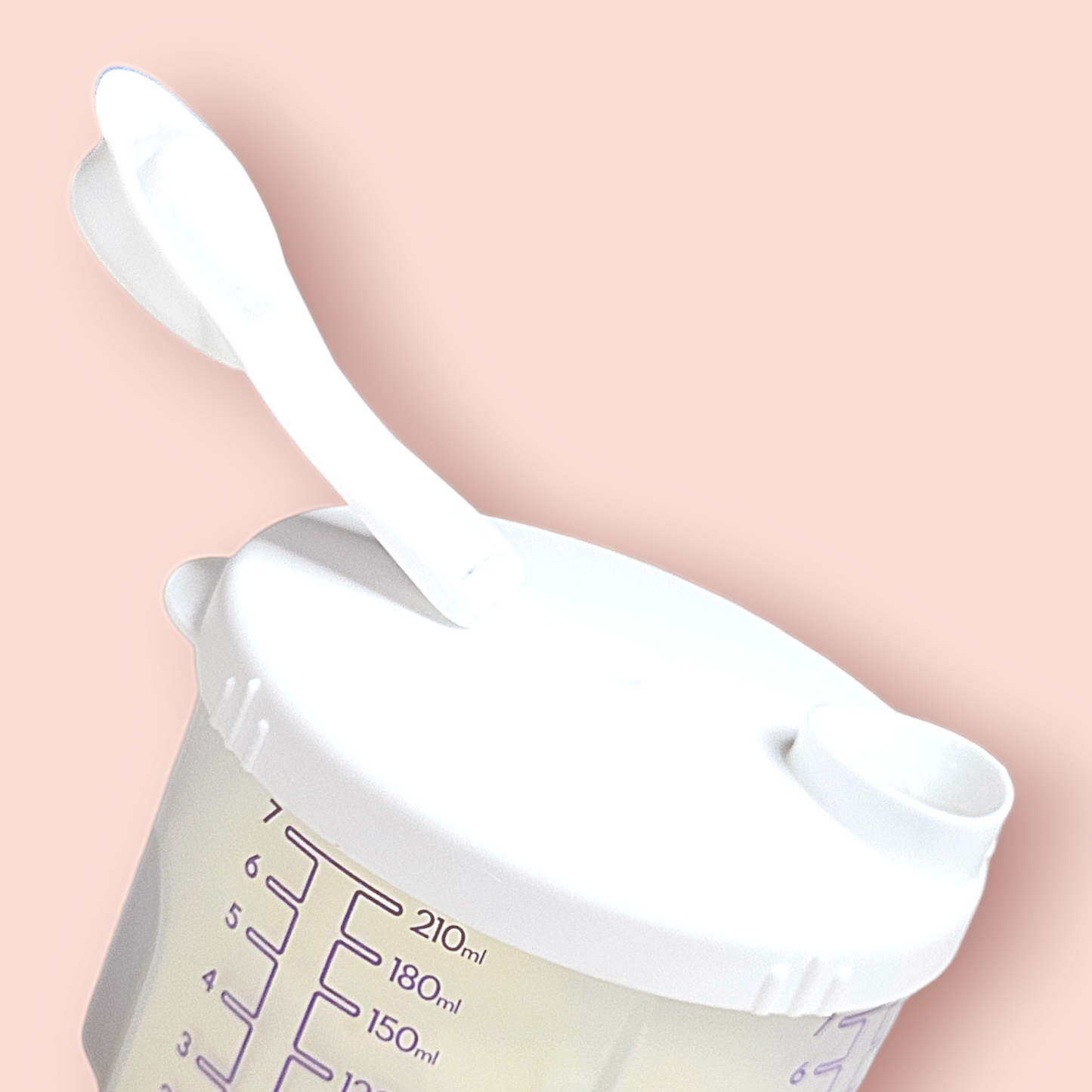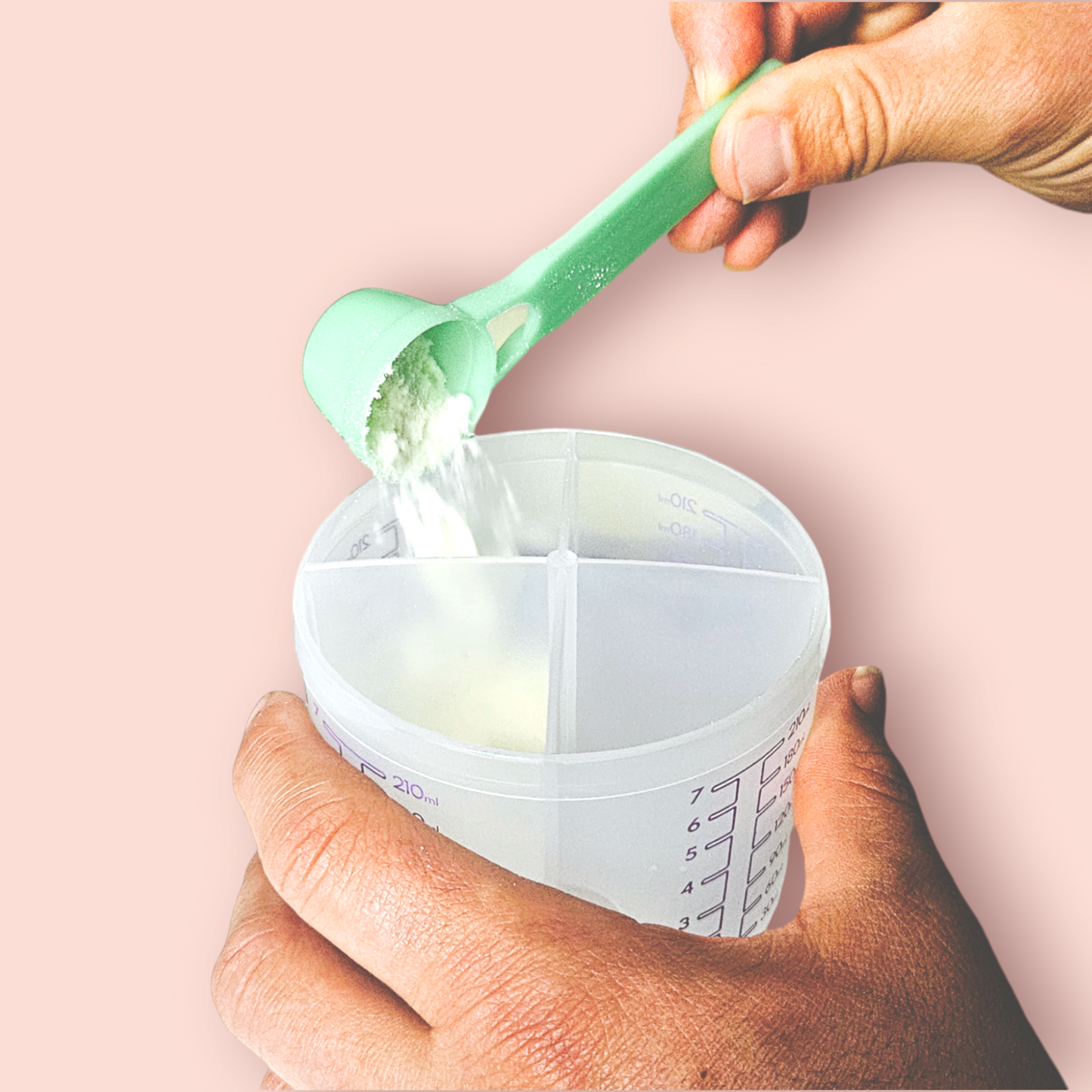 Our innovative formula dispenser with four compartments, each holding 7 scoops of 30ml formula. This ensures you can confidently take your baby out for the day, as it allows you to pack a total of 28 scoops (840ml) of formula, providing ample supply wherever you go.